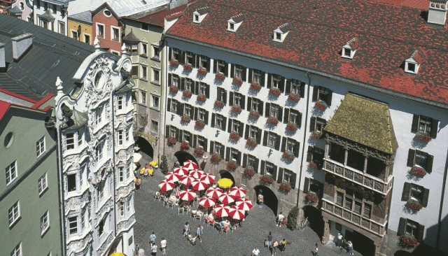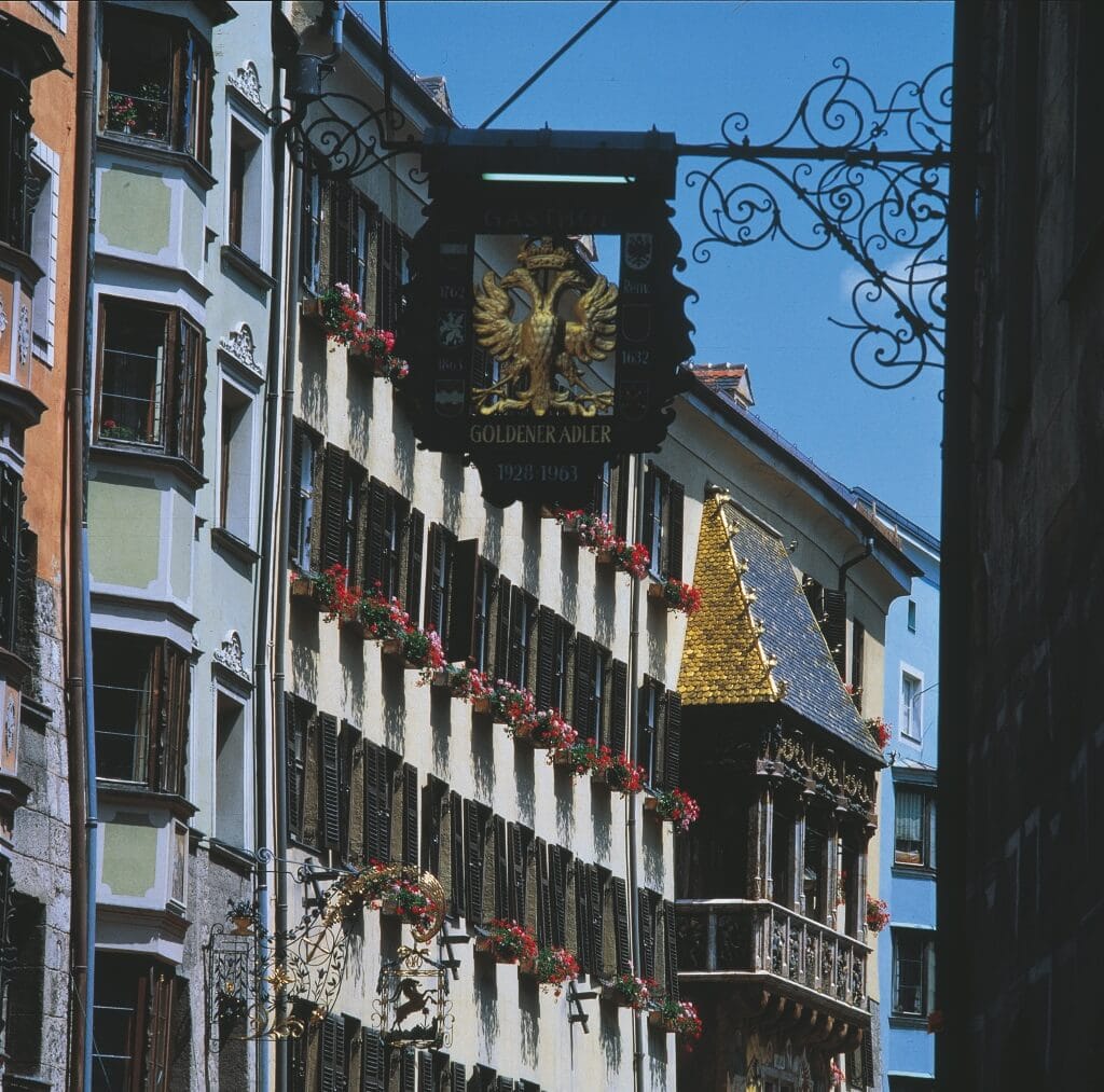 Najznámejšou z nich je zrejme Zlatá strecha – Goldenes Dachl, trojposchodová budova s balkónmi. Začiatkom pätnásteho storočia ju dal postaviť arcivojvoda Fridrich IV., aby slúžila ako kráľovské sídlo vládcov Tirolska. Cisár pri návšteve Innsbrucku pozoroval práve z tejto budovy súboje. Svoje meno dostala nepochybne preto, že bola pokrytá 2378 plátkami zlata. Jedinečná architektúra mesta, v ktorej sa stretáva gotika, renesancia i baroko poukazujú na to, že mesto dlhú dobu obývala bohatá vrstva vrátane členov Habsburskej rodiny.
